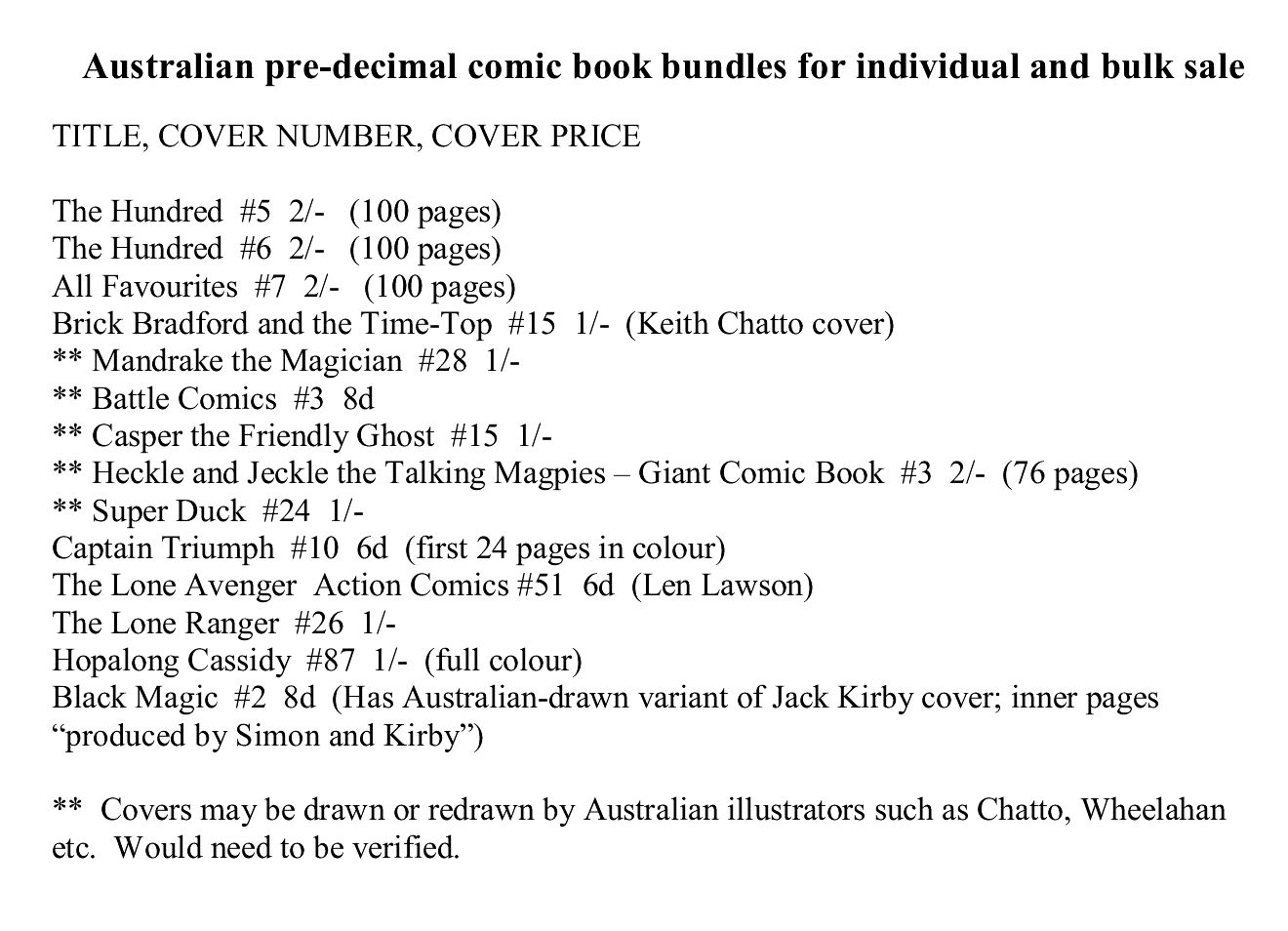 Australian pre-decimal comics sale - individual or in bulk
